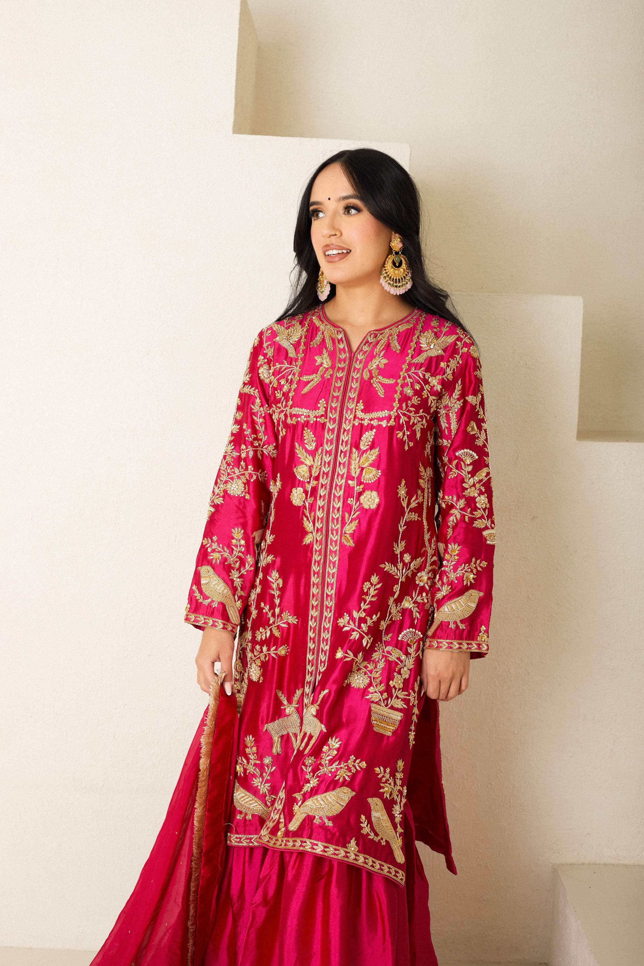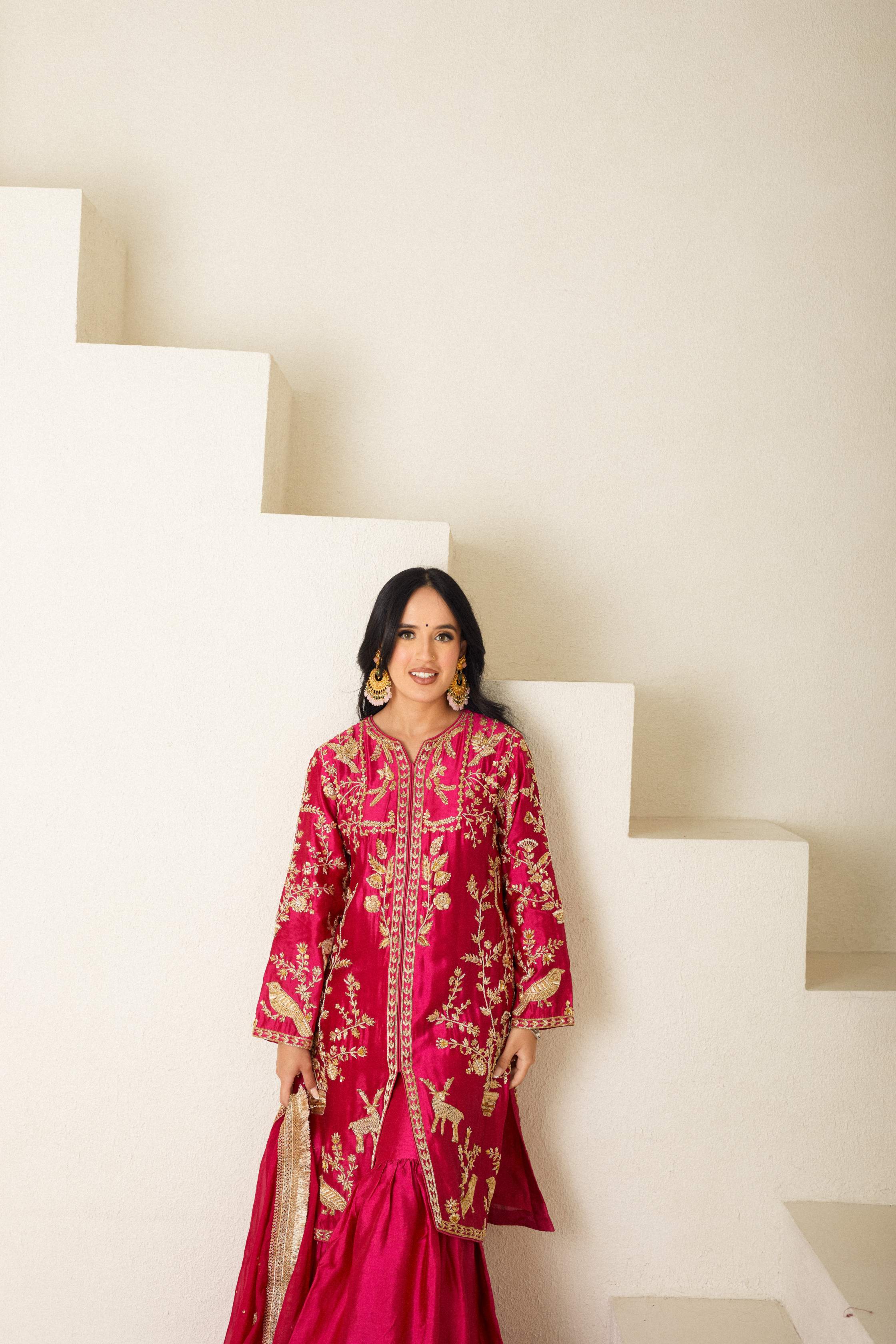 A striking hot pink ensemble from our Lehnda Panjab Collection, celebrating women who wear tradition with fearless beauty and regal femininity.